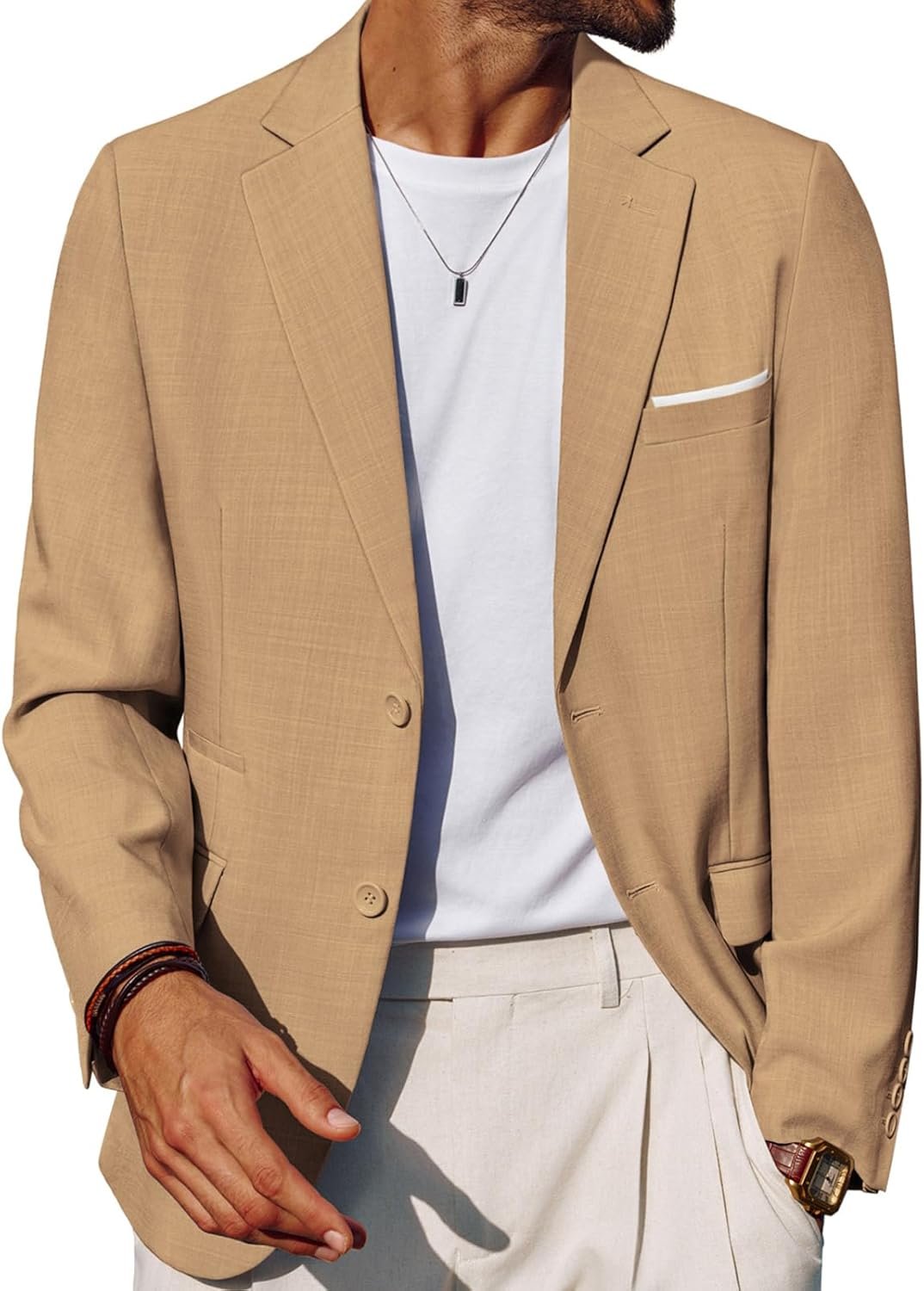 - FASHIONABLE AND VERSATILE: This men’s sports jacket has fashionable colors and classic tailoring. Whether you are wearing a T-shirt or a shirt, suit pants or jeans, or sweatpants, you can look stylish with this men’s suit jacket