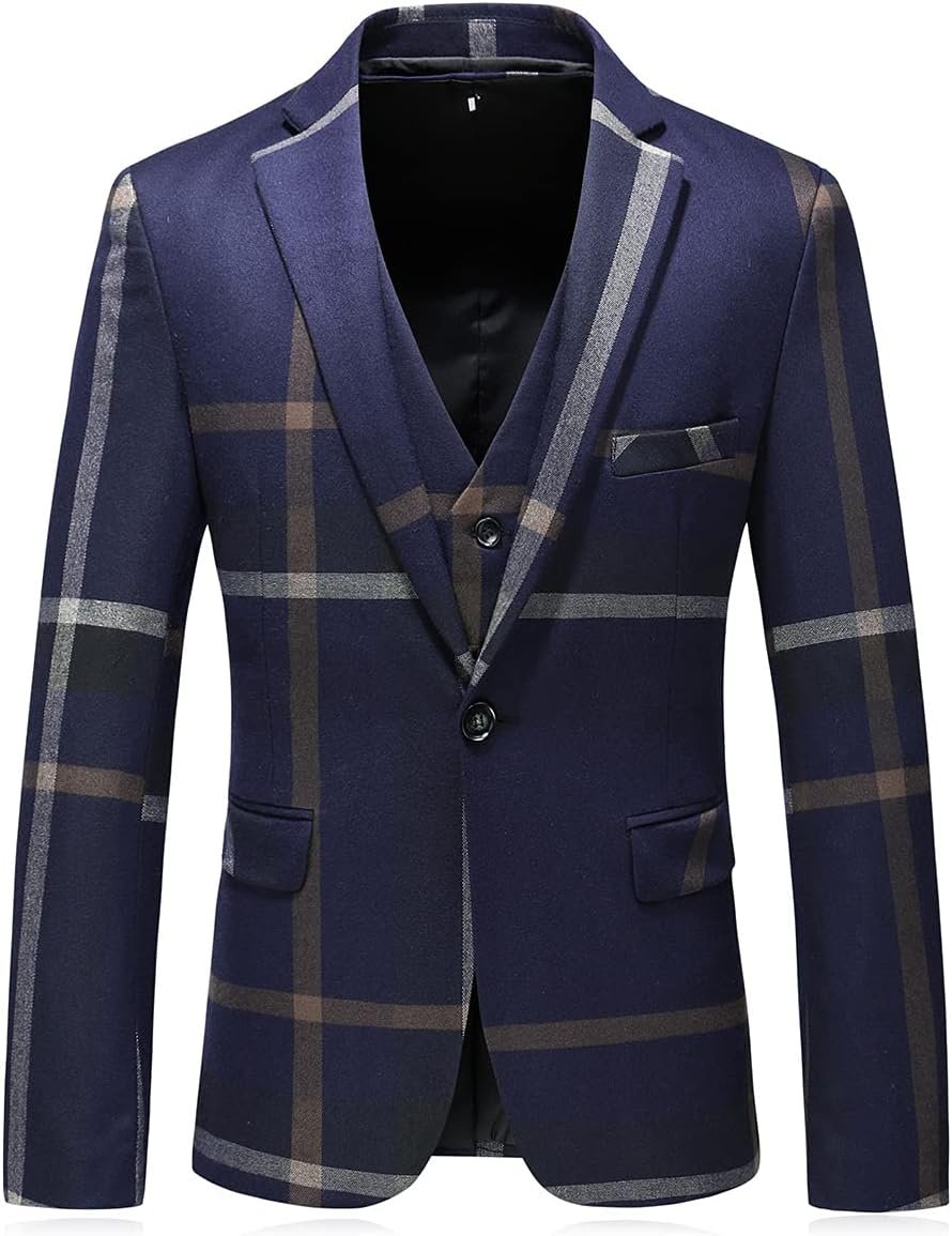 - Plaid suits for men, three piece including suit jacket and front flat pants and waistcoat. Some customers who ordered reflect the size is a little small, You can order it one size up